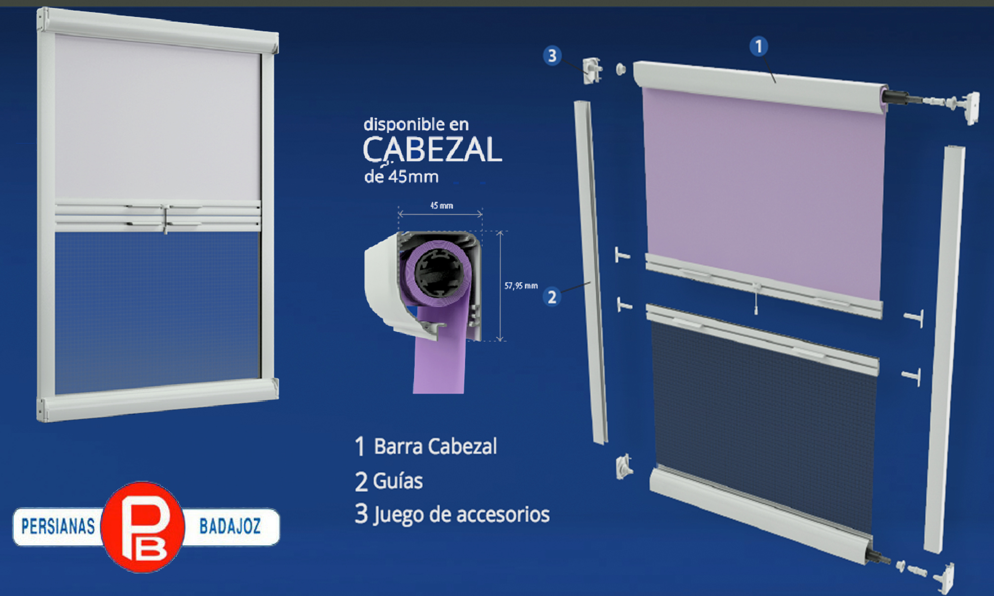 Es la combinación perfecta de estor enrollable y mosquitera. Consta de dos cajones de 45mm, el superior lleva un estor enrollable, normalmente de un tejido opaco BlackOut para regular la protección solar durante el día. Y en el cajón inferior una mosquitera L2005, para que durante el día entre la luz, pero no entren los mosquitos ni insectos.